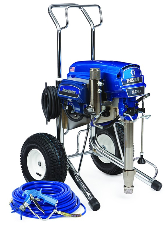 Напыление происходит с помощью аппарата для безвоздушного электрического распыления GRACO MARK V.